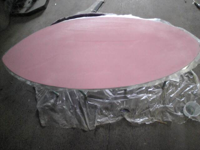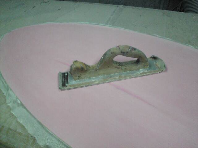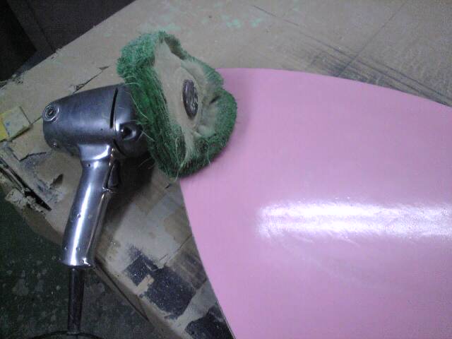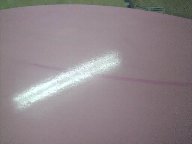 リペアの場合どうしてもガラスクロスの凹凸が表面に出てしまいます、デッキなら問題ありませんが、ボトムの場合は綺麗に磨かないといけません