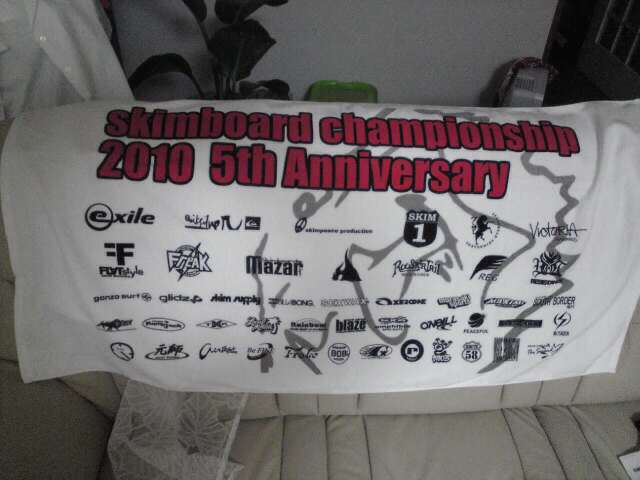家に帰ると荷物が届いていました 先日、神奈川県平塚で開催されたスキムボードチャンピオンシップ5thの記念品のタオルです 大会には行けなかったのですが、元師スキムボードも僅かながら協賛させて頂きました。 お礼にタオル送って頂きました 実行委員会の皆様ありがとうございます 今年でもう五年目なんですね